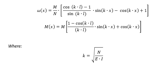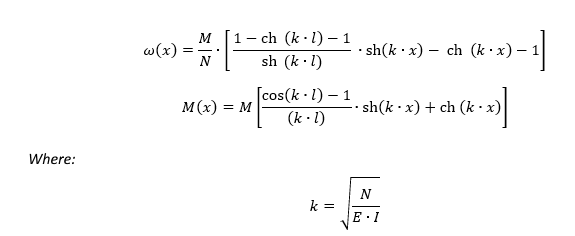 In the analytical solution, the equations of the elastic curve w(x) and the bending moment M(x) under compressive axial load are determined by the following formulas: