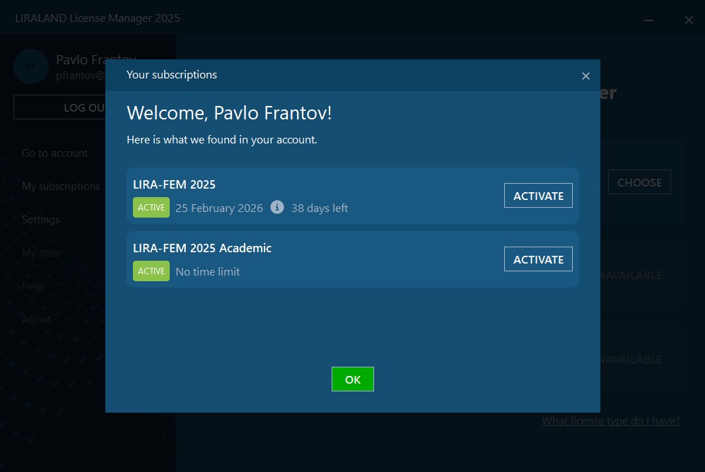 После завершения появится сообщение об успешной активации. Программные продукты LIRALAND готовы к использованию.