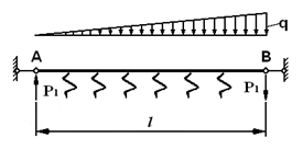 Определение напряженно-деформированного состояния балки на упругом основании под действием сосредоточенных сил и распределенной нагрузки, изменяющейся по закону треугольника.