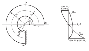 Определение напряженного состояния кривого узкого бруса прямоугольного сечения при изгибании сосредоточенной силой, приложенной к незакрепленному концу.