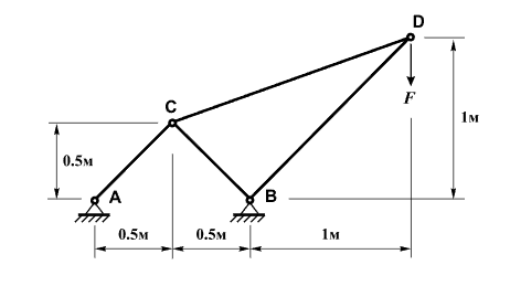 Определение напряженного состояния в элементах пространственной шарнирно-стержневой системы под действием сосредоточенной силы.
