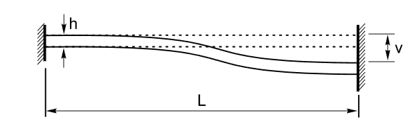 Определение напряженного состояния балки, защемленной по двум торцам, от воздействия поперечного смещения одного из них.