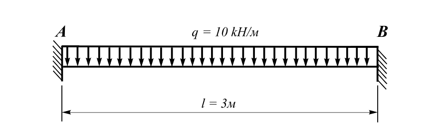 Определение напряженно деформированного состояния балки, защемленной с двух концов, от действия равномерно распределенной нагрузки, сосредоточенных продольных и поперечных сил и изгибающего момента.