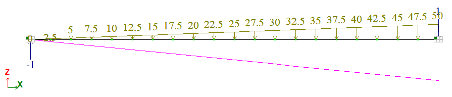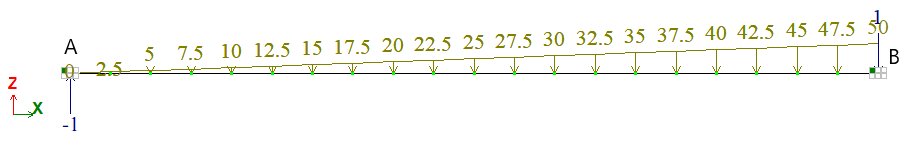 Неравномерно распределенная нагрузка: q = 50 тс/м;