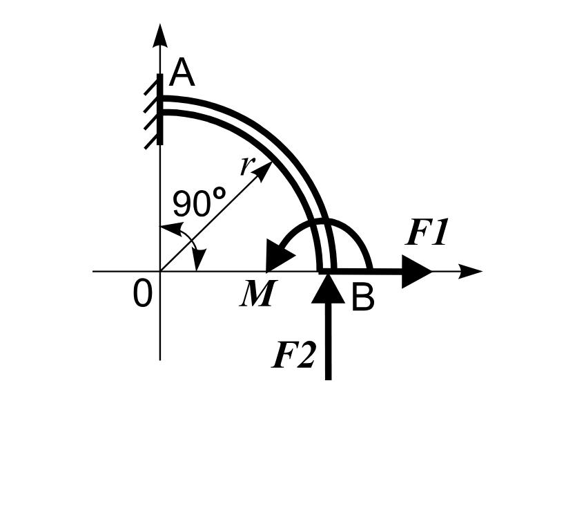Консольний круговий стержень постійного поперечного перерізу під дією в його площині зосереджених сил та моменту на вільному кінці