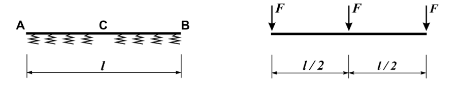 Навантаження балки, затиснутої по кінцях, в одній площині без урахування деформацій поперечного зсуву. Перевіряються значення максимального поперечного переміщення та вигинаючих моментів.