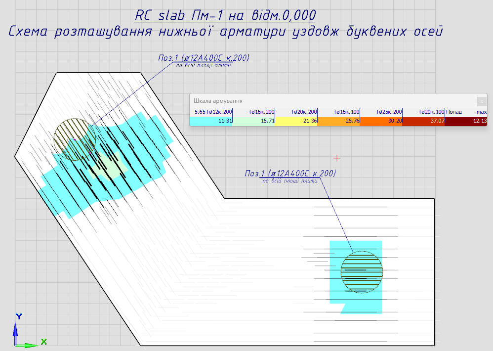 Нерідко монолітні з/б плити мають конфігурацію, що істотно відрізняється від тривіального прямокутника. У цих випадках актуальним стає питання про напрямок осей для результатів армування.