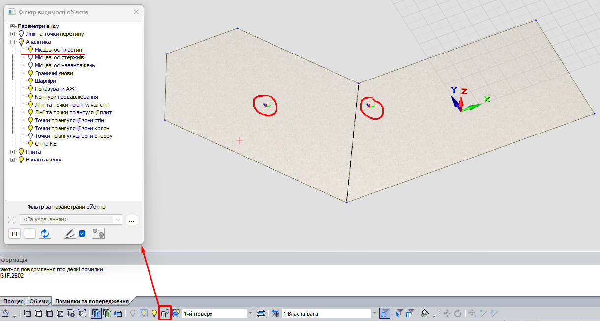 Далі, щоб побачити поточний напрямок осей, потрібно увімкнути їх візуалізацію, використовуючи Фільтр видимості об'єктів (рис. 3).