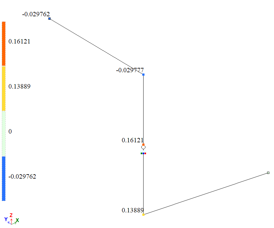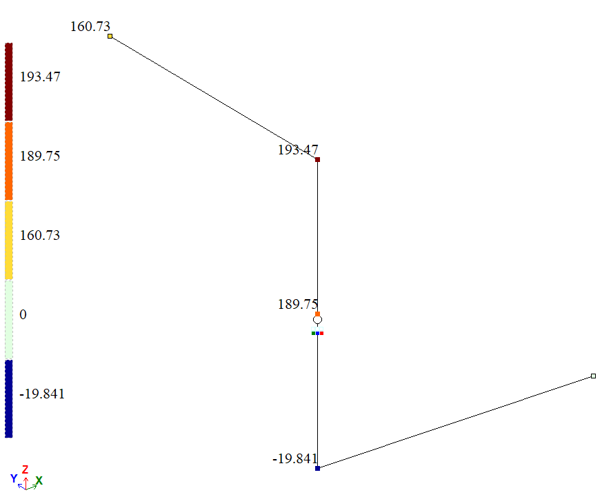 В опорних вузлах просторової системи (точки А, В) встановлені жорсткі в'язі за напрямками лінійних та кутових ступенів вільності в площині поперечного перерізу та пружні в'язі за напрямками лінійного та кутового ступенів вільності з площини поперечного перерізу.