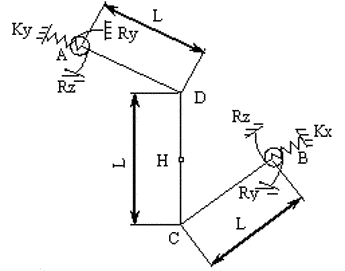 Просторова система складається з чотирьох стержнів. Горизонтальні стержні ортогонально лежать у паралельних горизонтальних площинах і з'єднані вертикальними стержнями, які шарнірно з’єднуються між собою (точка Н).