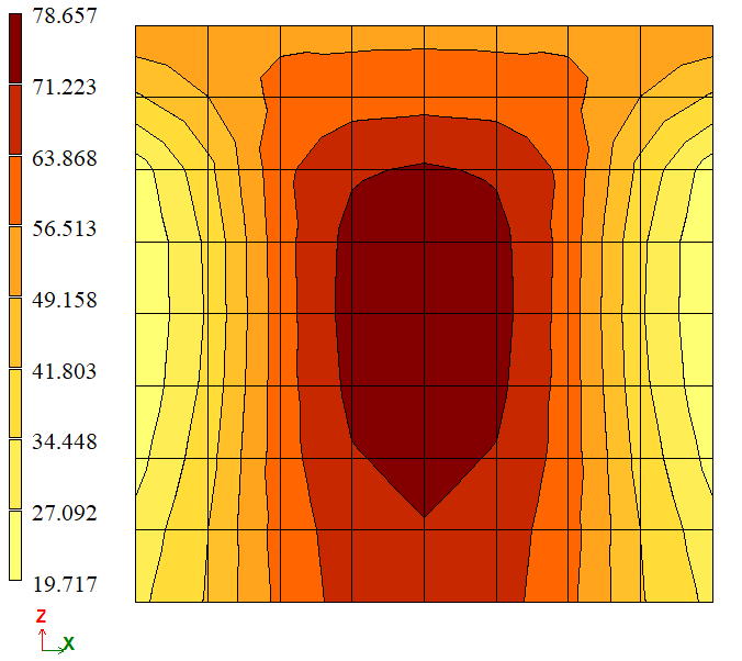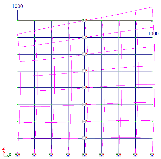 В центрі по вертикалі вузли забороняють переміщення по осі Z (Z=0).