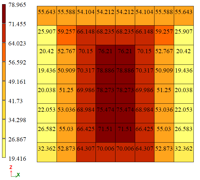 По верхній грані пластини вузли об’єднані фіктивним стержнем з великою згинальною та осьовою жорсткістю (EF = 3*1010 кН, EIy = 3*1010 кН*м2).