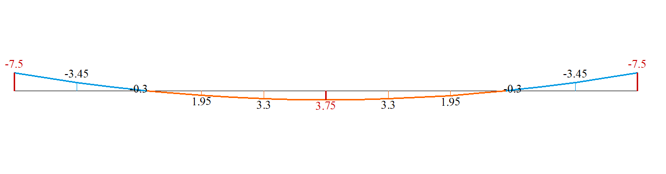 | Згинаючий момент на опорі балки, кН | -7,5 | -7,5 | 0 |