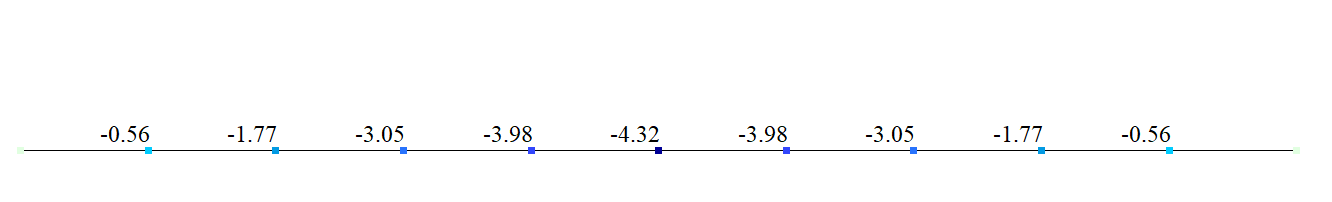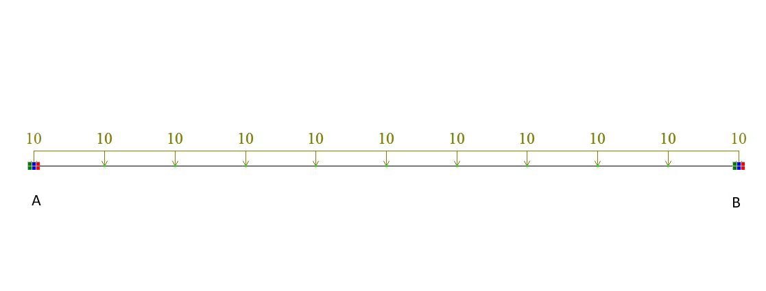 Навантаження балки, затиснутої по кінцях, в одній площині без урахування деформацій поперечного зсуву. Перевіряються значення максимального поперечного переміщення та вигинаючих моментів.