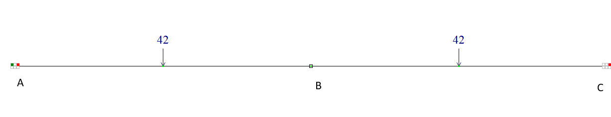 Розрахункова схема – проста рама, 4 стержневих елементи типу 2. Забезпечення граничних умов досягається за рахунок накладення зв'язків по напрямках ступенів свободи X, Z – для лівої опори А, для правої опори С і введенням зв'язку кінцевої жорсткості по напрямку ступеня свободи Z – для проміжної опори.