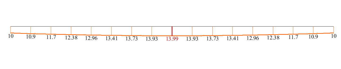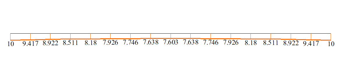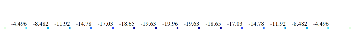 Розрахункова схема - плоска рама, 16 стержневих елементів, тип 2, 1 жорсткістю CUY = -12,5 кН*м/рад (-6,25 кН*м/рад) для стисло-вигнутого стрижня і CUY = 12,5 кН*м/рад (6,25 кН*м/рад) для розтягнутого стержня, тип 51, 17 вузлів.