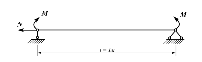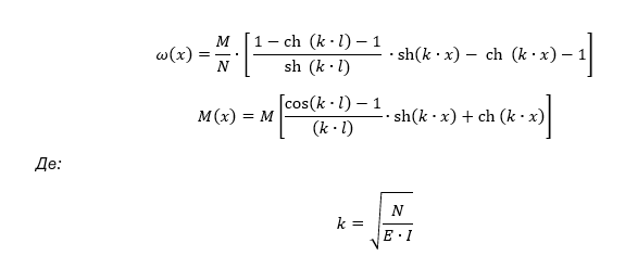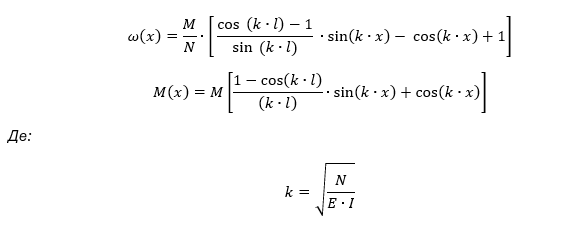 При аналітичному рішенні рівняння пружної лінії w (x) і рівняння згинального моменту M (x) при поздовжній силі, що стискає, визначаються за формулами:
