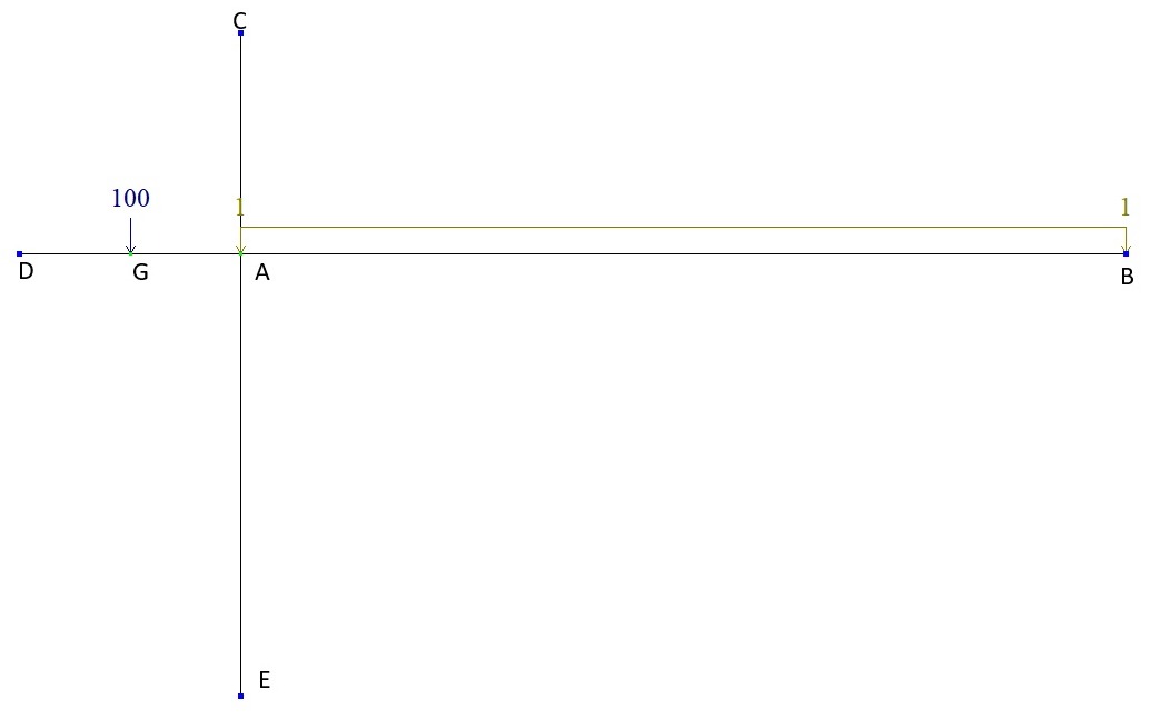 Вертикальний стержень жорстко защемлений у нижньому вузлі (точка E) і шарнірно опертий у верхньому вузлі (точка C).