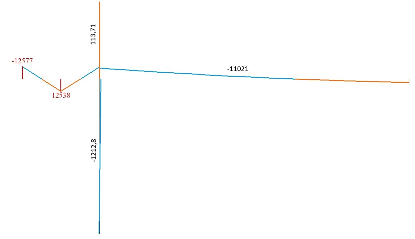 | Згинальний момент M (стержень AВ), Н*м | -11023,7 | -11021 | 0,02 |
