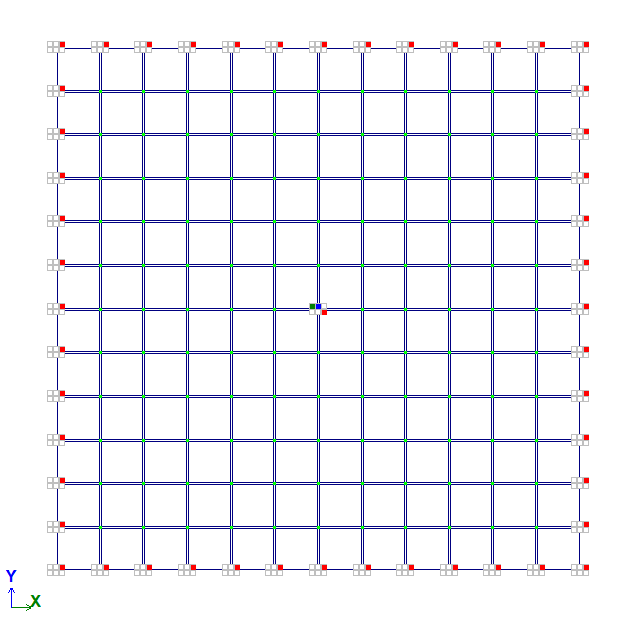 Шарнірне закріплення вузлів по контуру із площини XOY (переміщення w = 0).