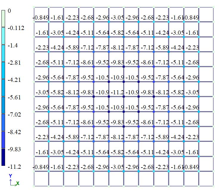В’язі за напрямками ступенів вільності X, Y, uZ в центрі пластини.