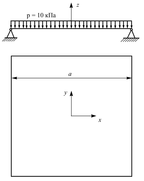 Квадратна ізотропна пластина постійної товщини вільно оперта по периметру і навантажена рівномірно розподіленим навантаженням p.