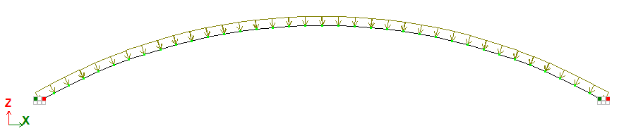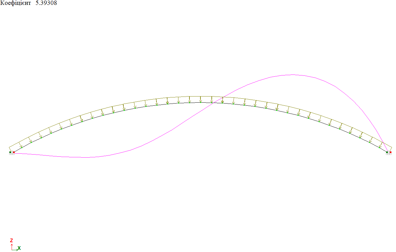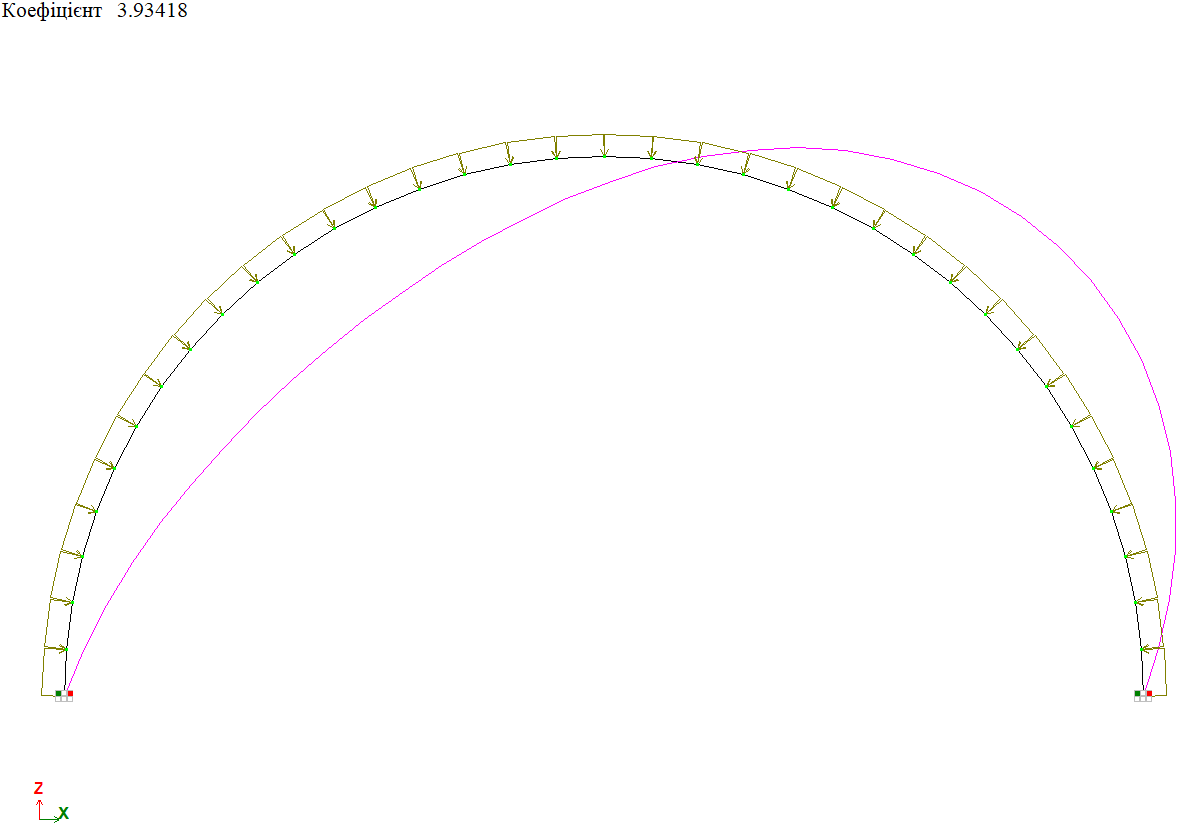 Забезпечення граничних умов досягається за рахунок накладання в’язів на опорні вузли арки за напрямами ступенів вільності X, Z.