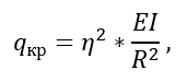 де η (параметр критичного навантаження) визначається рішенням трансцендентного рівняння: