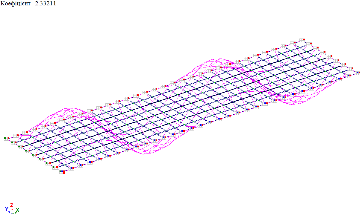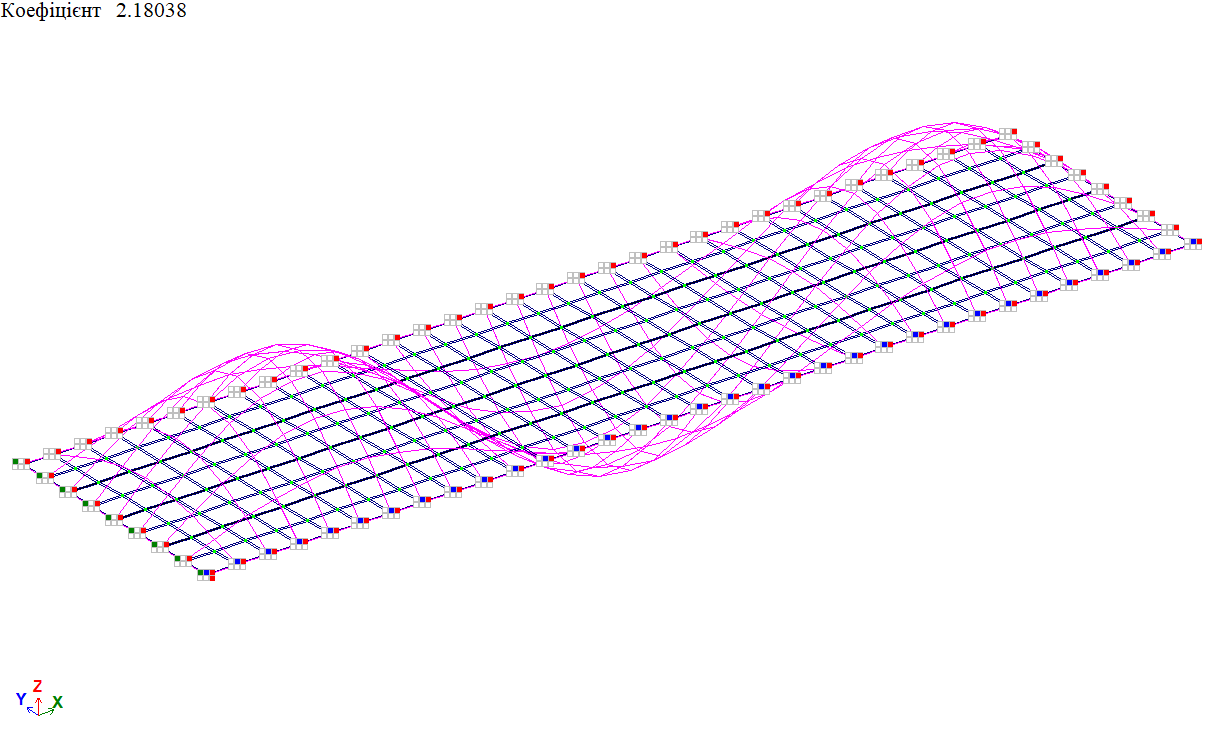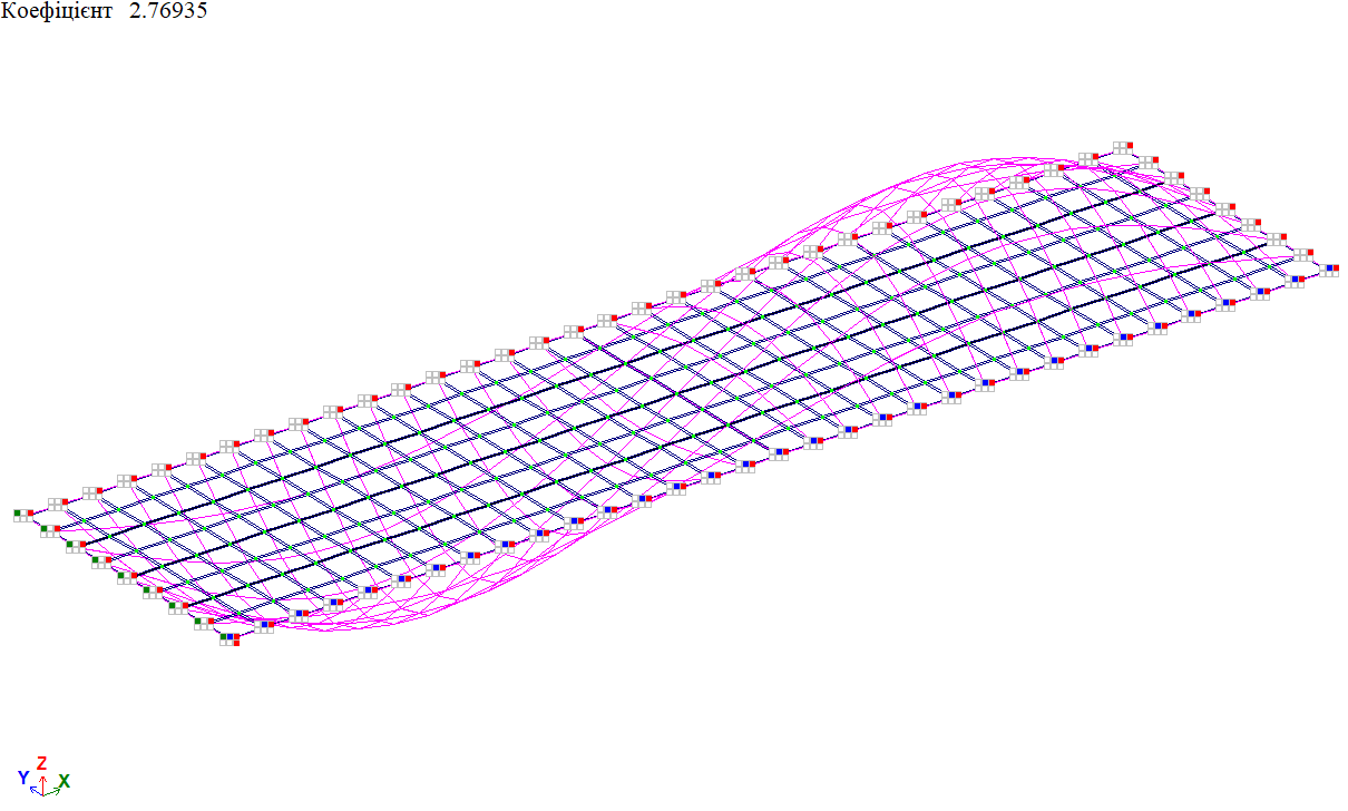 | Розрахункова схема | Форма втрати стійкості | Кількість напівхвиль у поперечному n та поздовжньому m напрямках | Теорія | LIRA-FEM | Похибка, % |