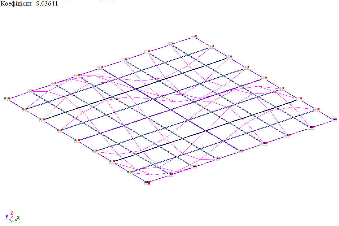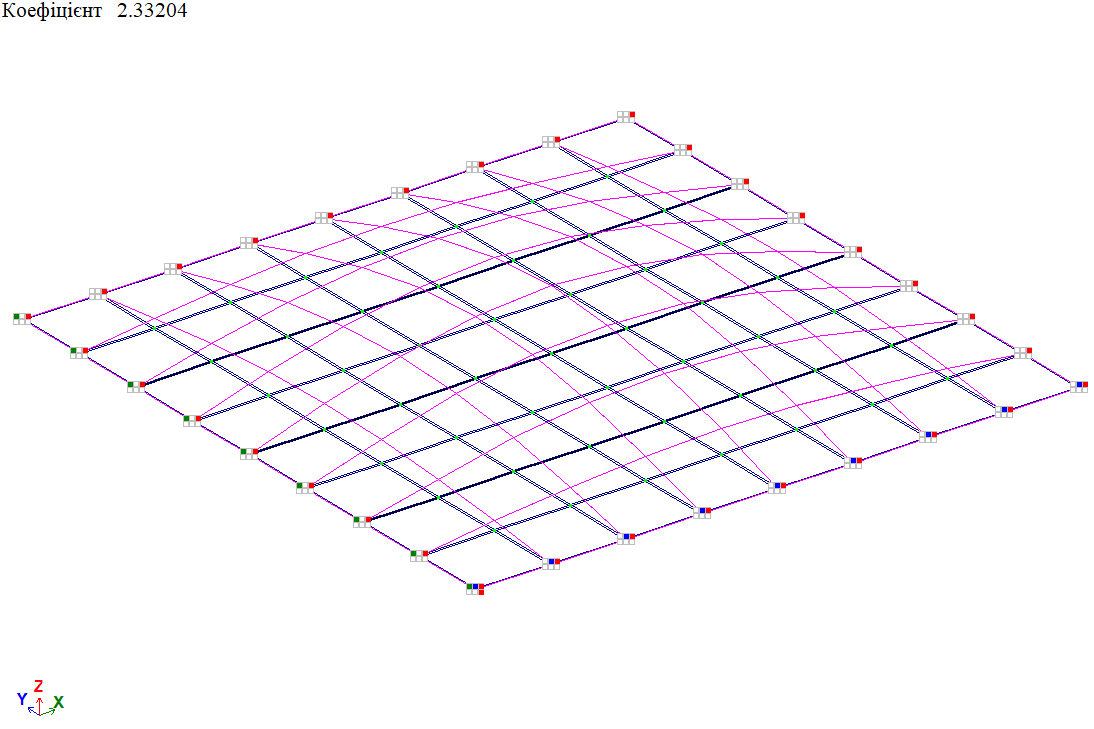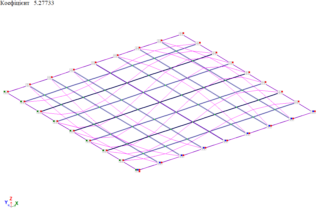 Забезпечення граничних умов досягається за рахунок накладання в'язів на вузли опорного контуру пластини за ступенем вільності Z.