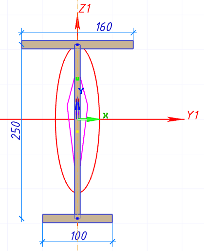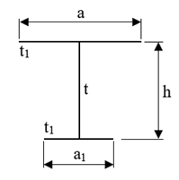 Для поперечного перерізу з формою у вигляді нерівнополочного тонкостінного двотавра перевірити точність обчислення геометричних характеристик.